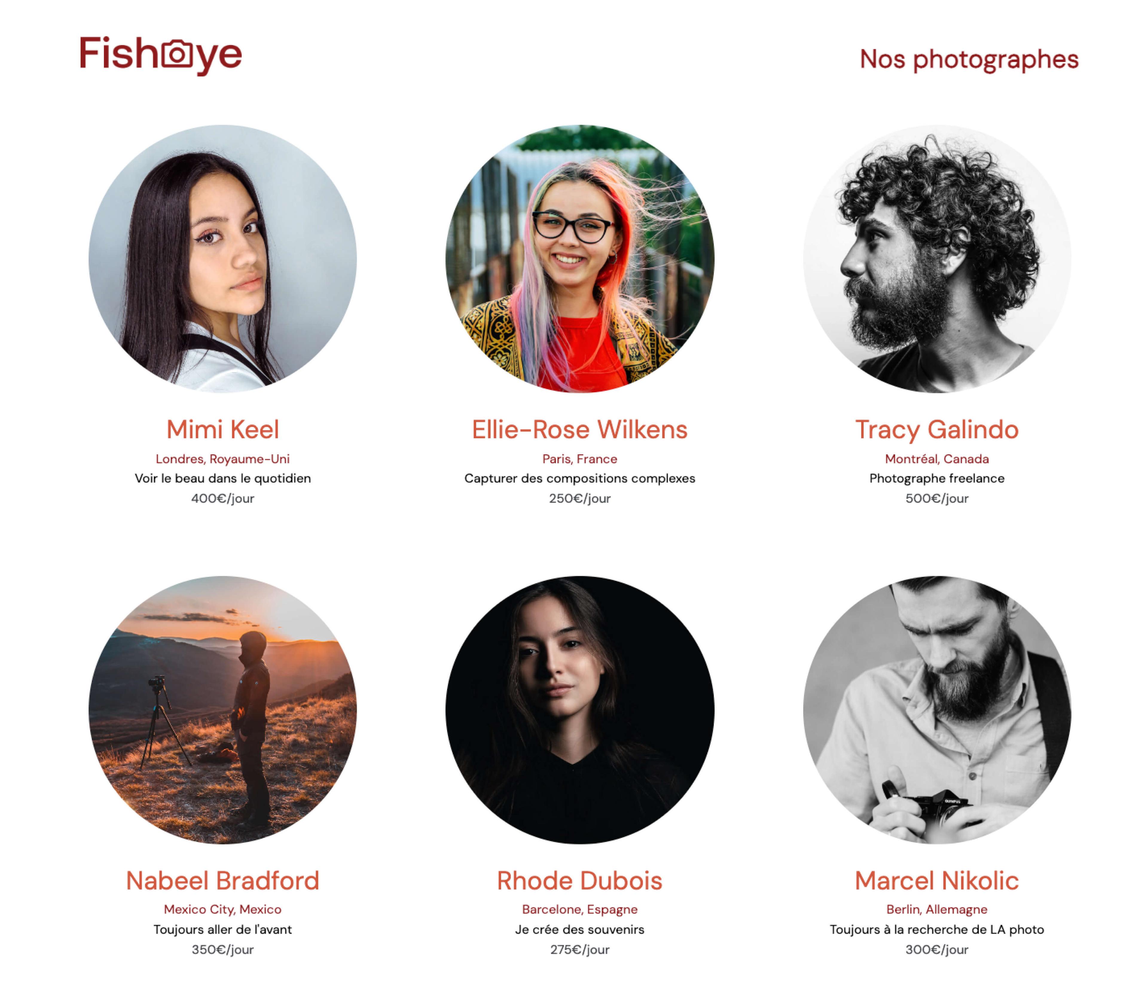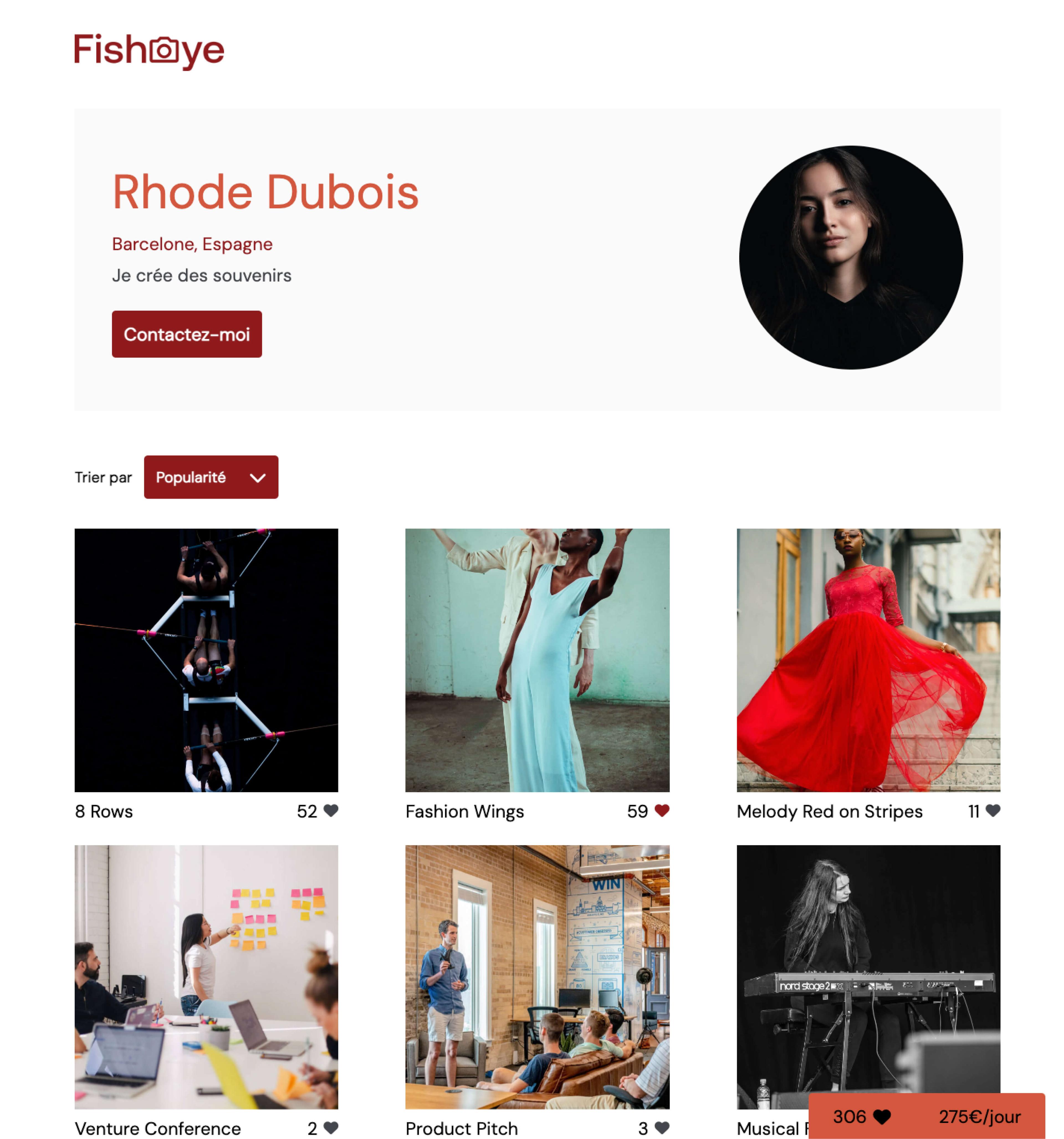 Fisheye is a freelance photographer concept created in 2023 to showcase my progress with React, Redux, and Sass.